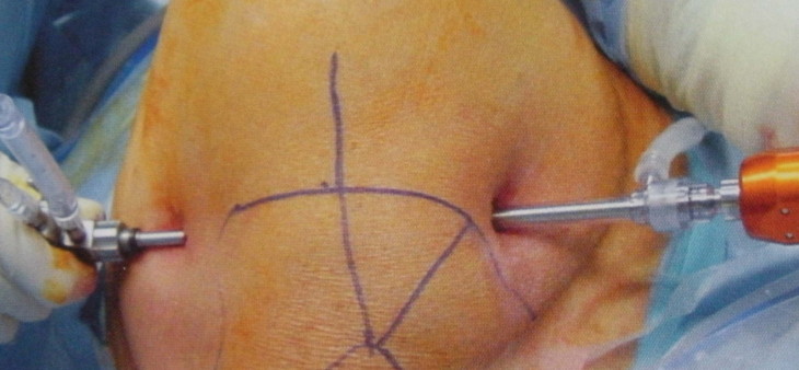 Cirurgia minimante invasiva, realizada em hospitais com equipamento específico em que permite o cirurgião realizar o procedimento cirúrgico através de pequenas incisões na pele como se fossem furos.